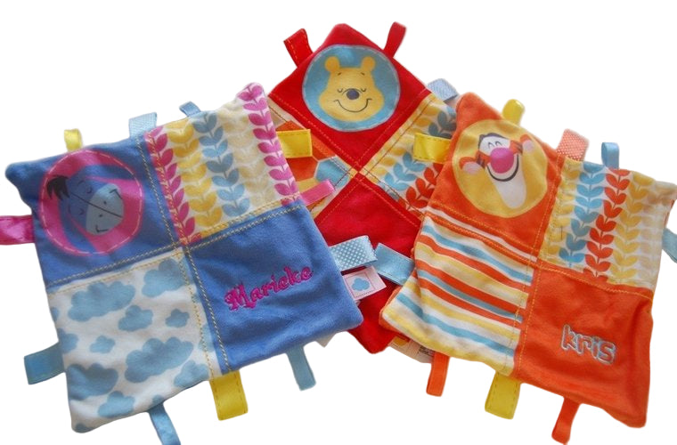 Elk labeldoekje heeft zijn eigen charme en karakter, maar allemaal delen ze die herkenbare Disney kwaliteit en zachtheid die ouders vertrouwen.