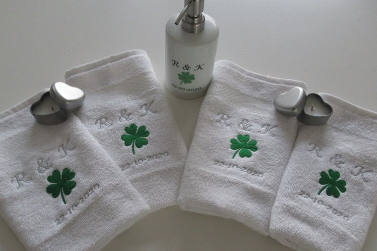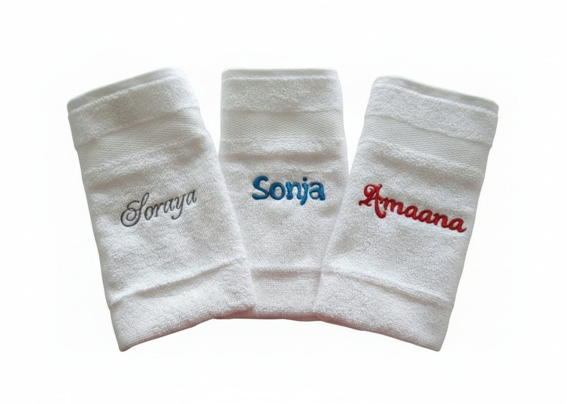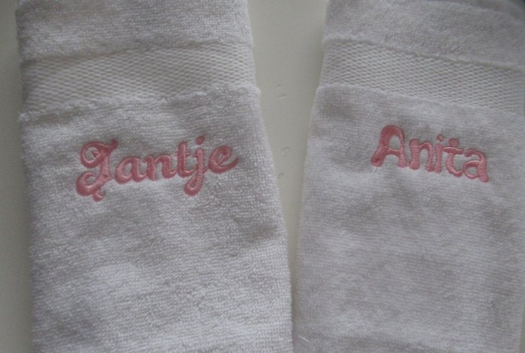De gastendoek met naam wordt geborduurd met een naam of persoonlijke tekst, waardoor het een uniek bedankt cadeau wordt.