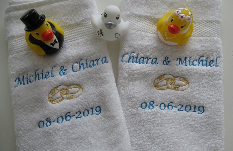 Gastendoek met namen en trouwdatum