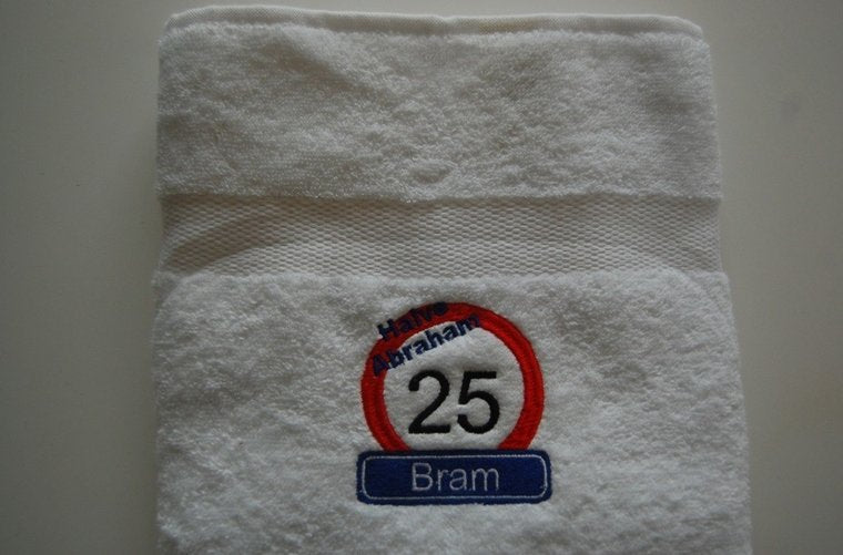 Halve Abraham 25 Jaar Handdoek met Naam – Gepersonaliseerd Cadeau