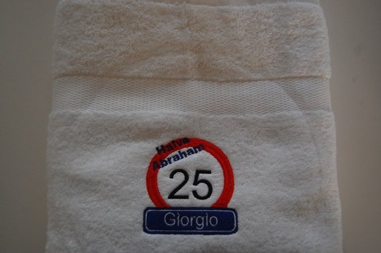 Halve Abraham 25 jaar handdoek met naam