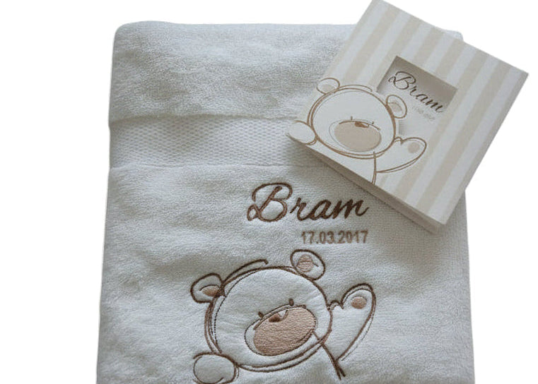 Handdoek met eigen afbeelding of geboortekaartje
