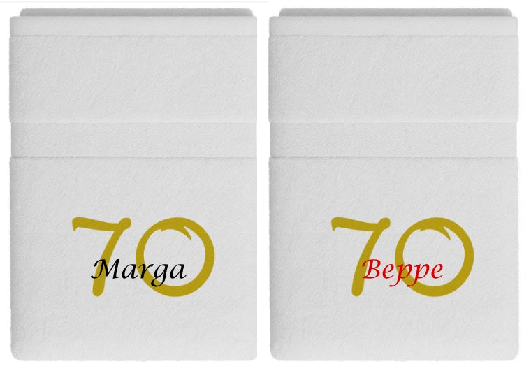 Wordt iemand binnenkort 70 jaar? Dan is deze handdoek 70 jaar met naam en leeftijd het perfecte cadeau voor deze bijzondere mijlpaal! De leeftijd 70 wordt standaard groot op de handdoek geborduurd, met de naam van de jarige er stijlvol doorheen verwerkt. Andere leeftijd? Wil je een andere leeftijd laten borduren? Dit is ook mogelijk, maar deze opties zijn niet standaard beschikbaar. Neem in dat geval even contact met ons op om de mogelijkheden te bespreken.