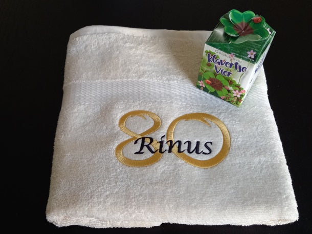 Wordt iemand binnenkort 80 jaar? Dan is deze handdoek 80 jaar met naam en leeftijd het perfecte cadeau voor deze bijzondere mijlpaal! De leeftijd 80 wordt standaard groot op de handdoek geborduurd, met de naam van de jarige er stijlvol doorheen verwerkt.