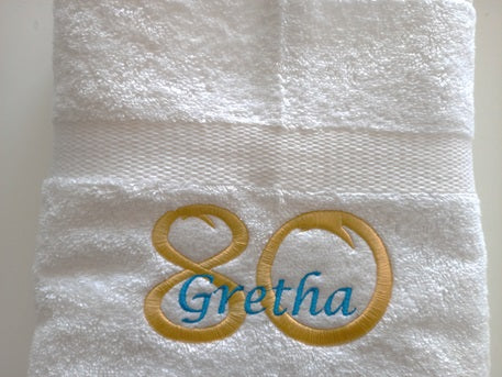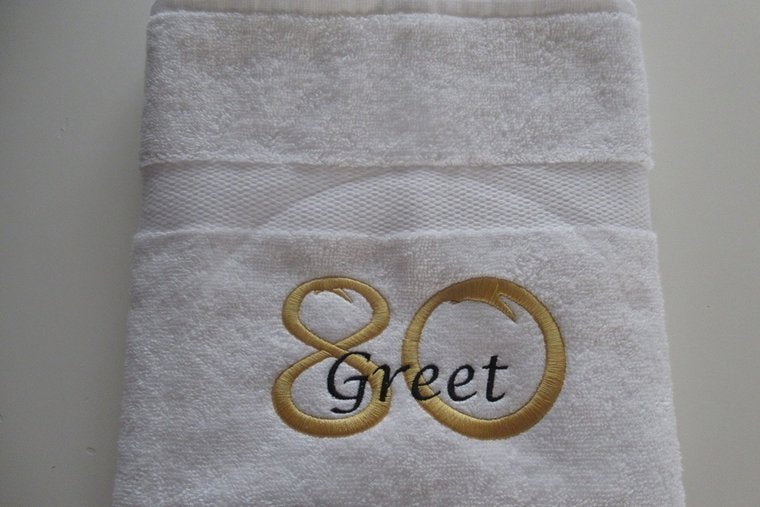 80 jaar cadeau met naam en leeftijd – Gepersonaliseerde handdoek