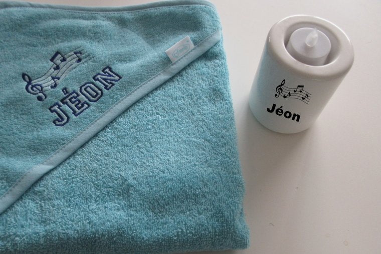Combineer de badcape met andere gepersonaliseerde items voor een compleet cadeaupakket: