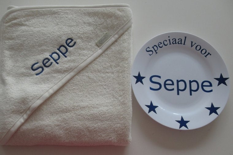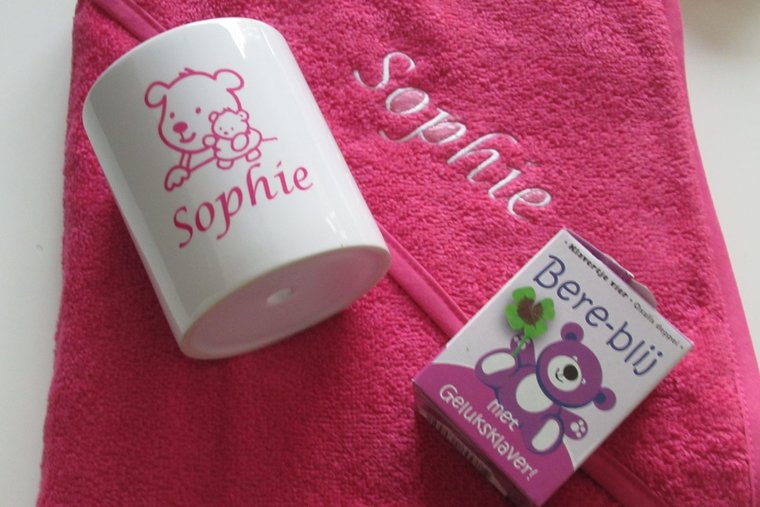 🛍️ Badjas of badcape met naam – om het cadeau nog completer te maken.