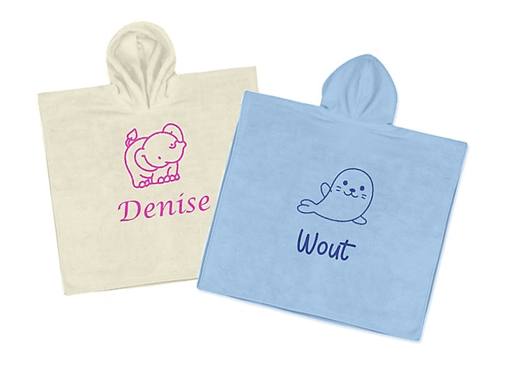 Een kinderponcho van badstof is het perfecte cadeau voor jonge kinderen van ongeveer 1,5 tot 5 jaar. Door een naam onder een leuke afbeelding te borduren, maak je een praktisch en persoonlijk geschenk dat kinderen dagelijks gebruiken na het badderen, zwemmen of spelen in het water. Dankzij de zachte badstof en het mooie ontwerp wordt elk moment buiten of na het bad extra speciaal.