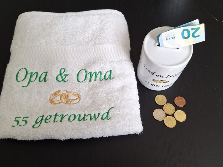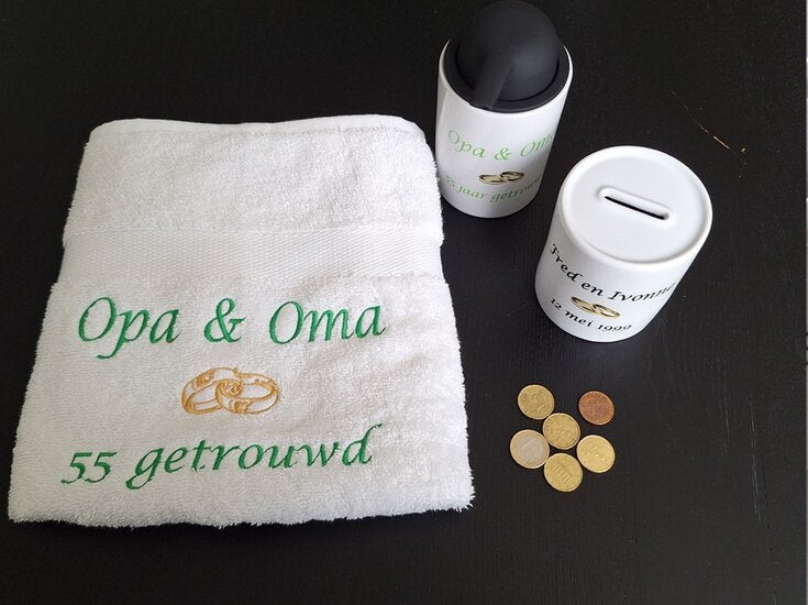 * Als kleinigheidje bij een verloving, vaak gecombineerd met persoonlijke cadeaus zoals een spaarpot met namen of handdoeken met trouwdatum.