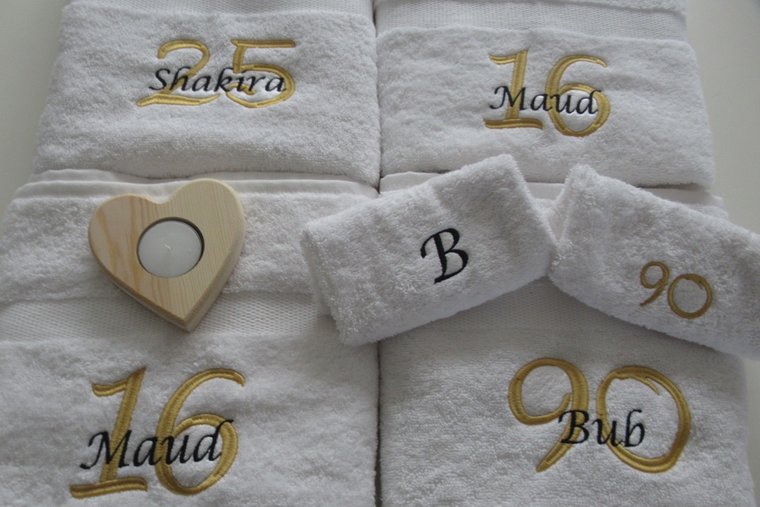 - een geborduurde handdoek met Delftsblauwe afbeelding,