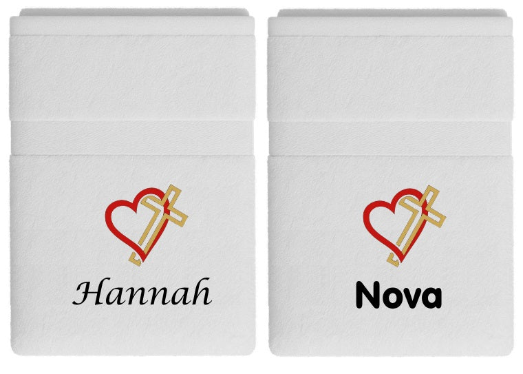 Handdoek met hart, kruis en eigen naam – een persoonlijk cadeau met betekenis