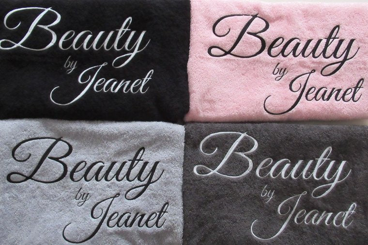 De meeste klanten kiezen ervoor om hun logo te laten borduren op een witte, ecru, grijs of zwarte handdoek, omdat dit neutrale kleuren zijn.