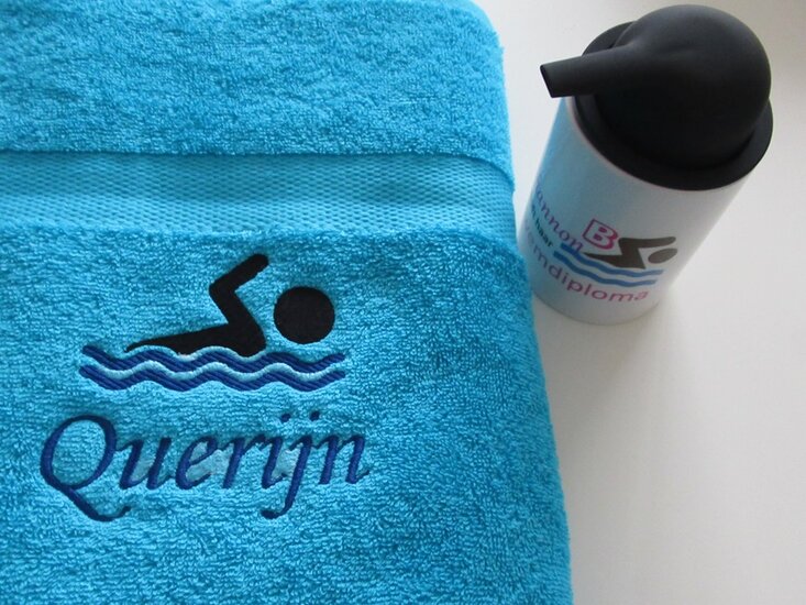 Zoek je een bijzonder cadeau voor een echte zwemliefhebber? Met een gepersonaliseerde zwem handdoek met naam geef je een geschenk dat zowel praktisch als persoonlijk is. De handdoek wordt geborduurd met naam, initialen of korte tekst én voorzien van een sportief symbool van een zwemmer. Perfect om cadeau te doen voor een verjaardag, als bedankje voor een trainer of als prijs bij een zwemwedstrijd.