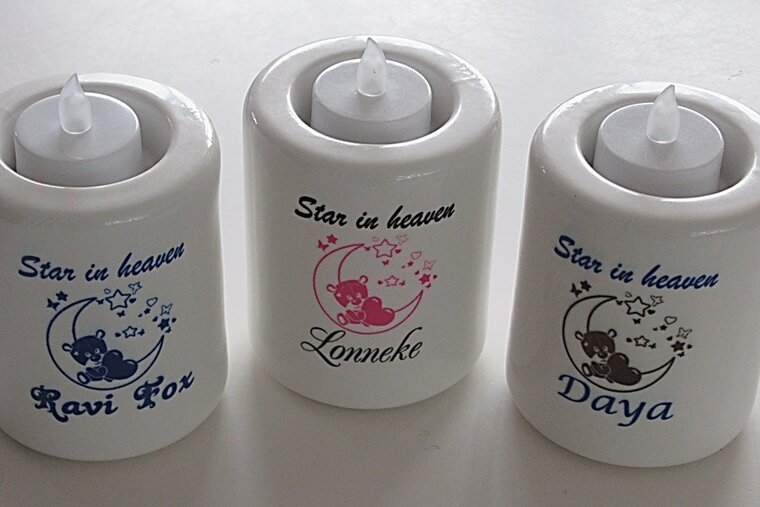 Een teder en liefdevol herdenkingslichtje, dat steun, troost en blijvende herinnering biedt aan een kindje dat veel te vroeg is heengegaan.