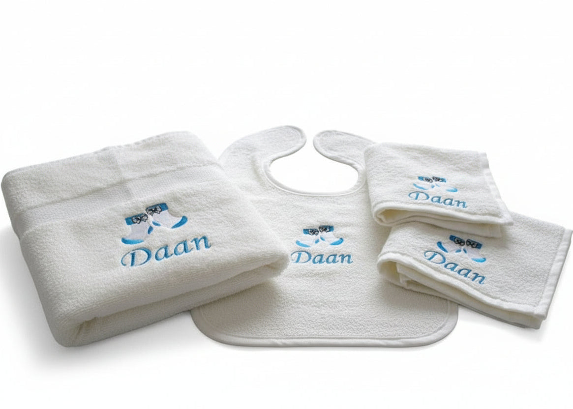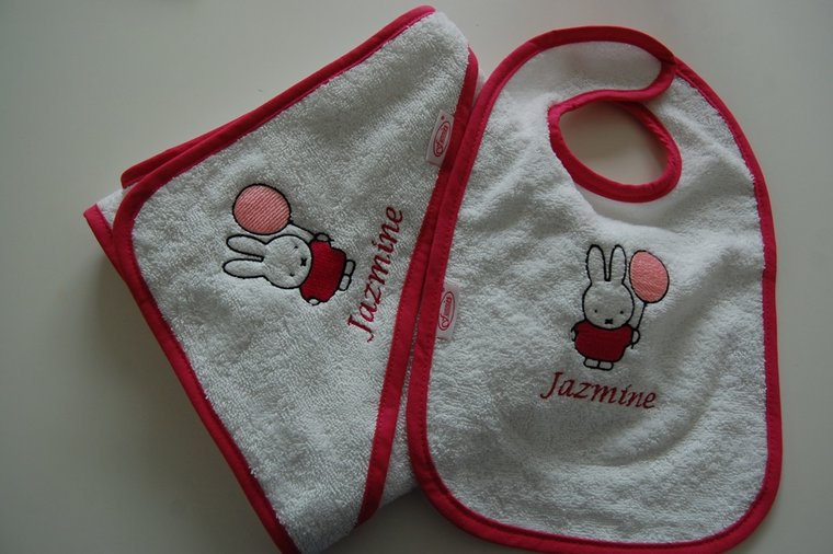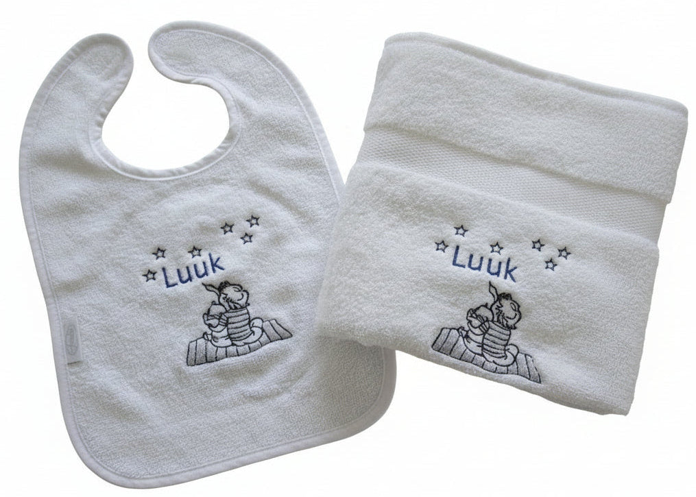 Voor een compleet kraampakket kun je de slabber combineren met een knuffeldoekje, kinderbordje of kinderdrinkmokje. Zo ontstaat een volledig persoonlijk geschenk dat zowel nuttig als blijvend is.