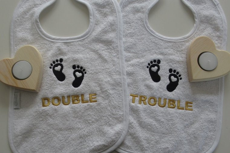 Zo maak je van één cadeau een complete set, bijvoorbeeld een slabber met bordje voor een verjaardag, een drinkmokje bij een kraamcadeau of een badcape bij een babyshower.