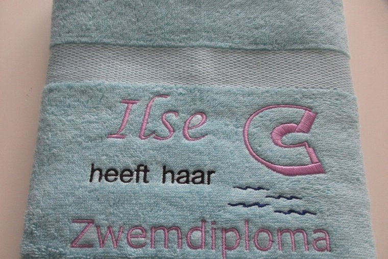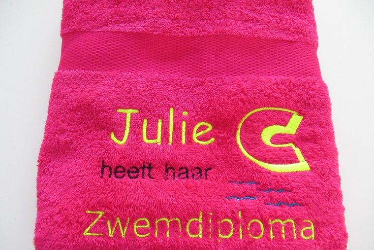 De handdoek met naam voor zwemdiploma C is praktisch én persoonlijk. Zachte kwaliteit, vrolijke kleuren en een unieke borduring maken het een favoriet cadeau voor ouders, grootouders en peetouders. Elk artikel wordt speciaal geborduurd, waardoor het een uniek aandenken is.